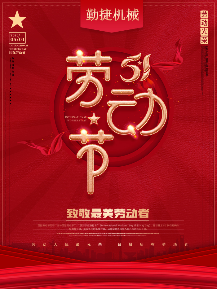 一年一度的五一小長假將至,在這里瑞安市勤捷機械有限公司全體員工向您及您的家人送出最真摯的祝福,提前祝大家勞動節(jié)快樂!